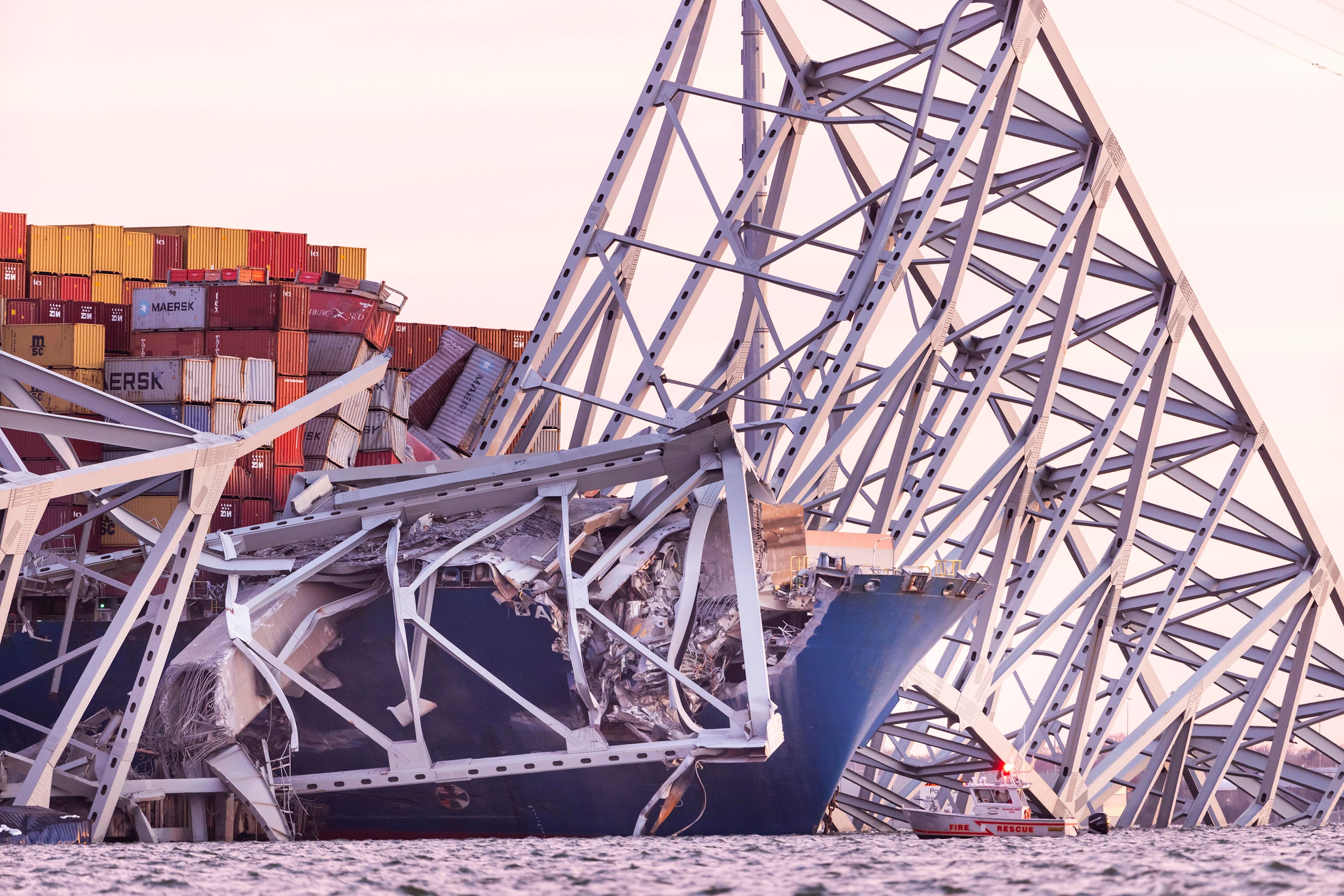 Impactantes imágenes del derrumbre del puente en Baltimore