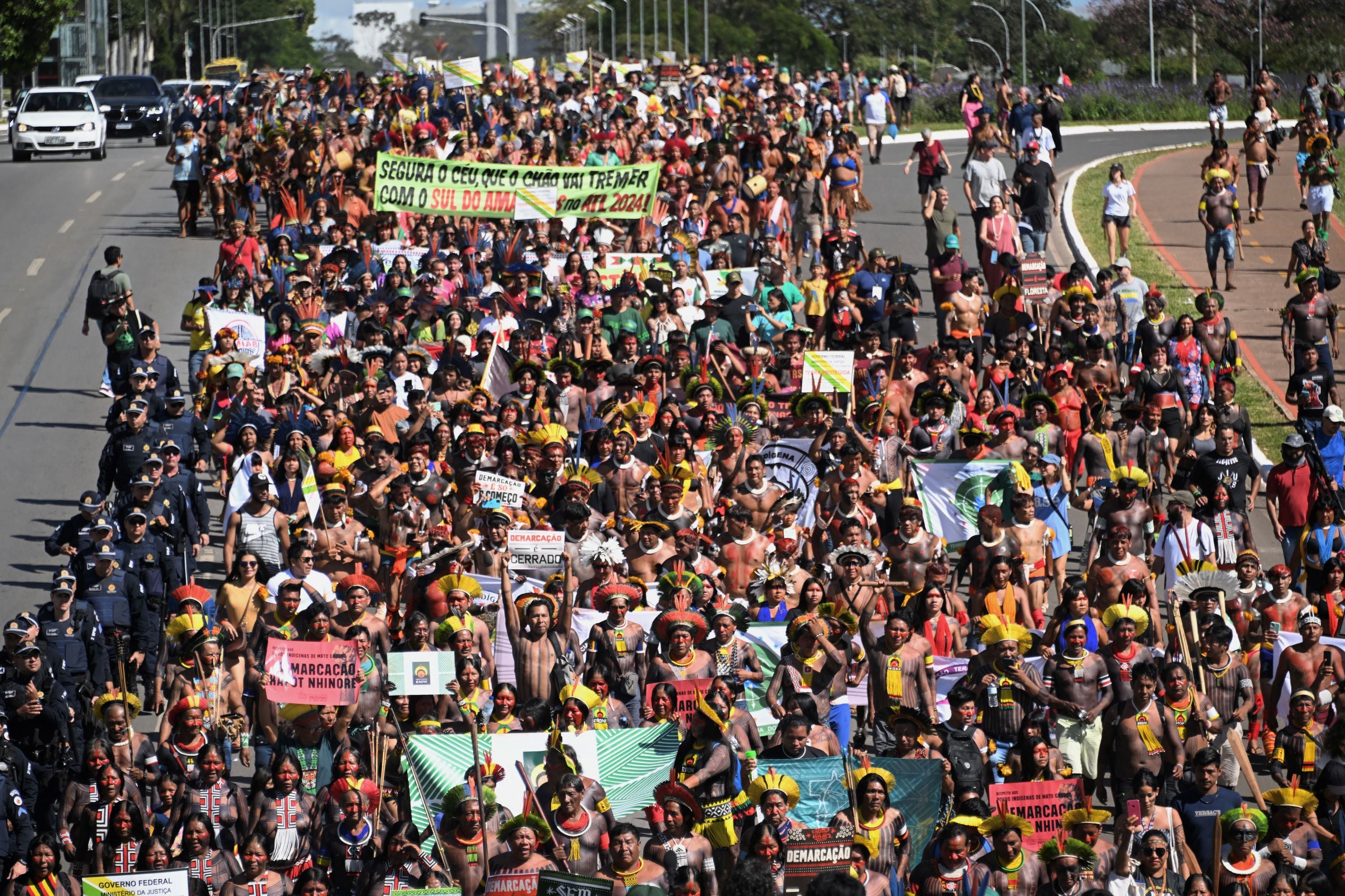 Miles de indígenas marcharon este martes en la capital de Brasil para reclamar seguridad y la demarcación de sus tierras, un asunto que enfrenta al gobierno del presidente Luiz Inácio Lula d