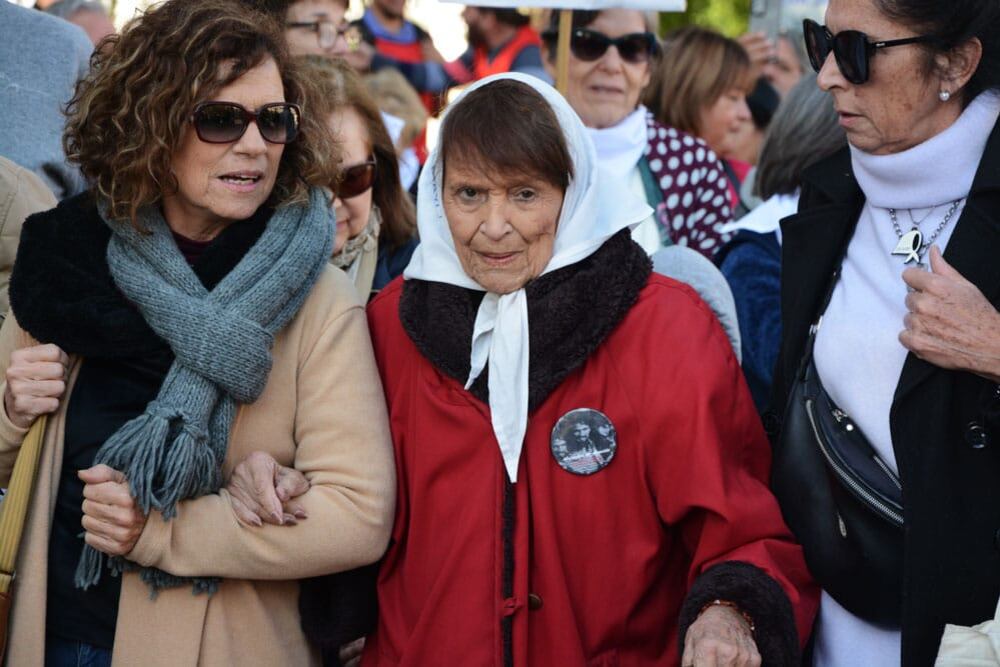 La ronda de las Madres de Plaza de Mayo, que ocurre cada jueves desde hace más de cuatro décadas alrededor de la pirámide frente a la Casa Rosada en Buenos Aires, se replicó este jueves en la plaza