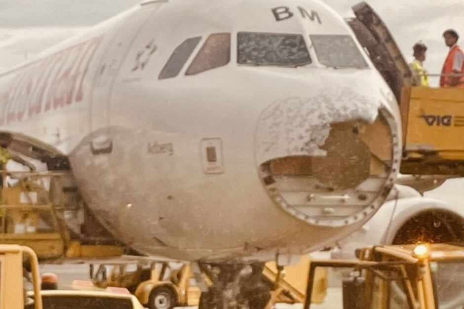 Así fue que una tormenta de granizo destrozó el frente de un avión que se preparaba para aterrizar