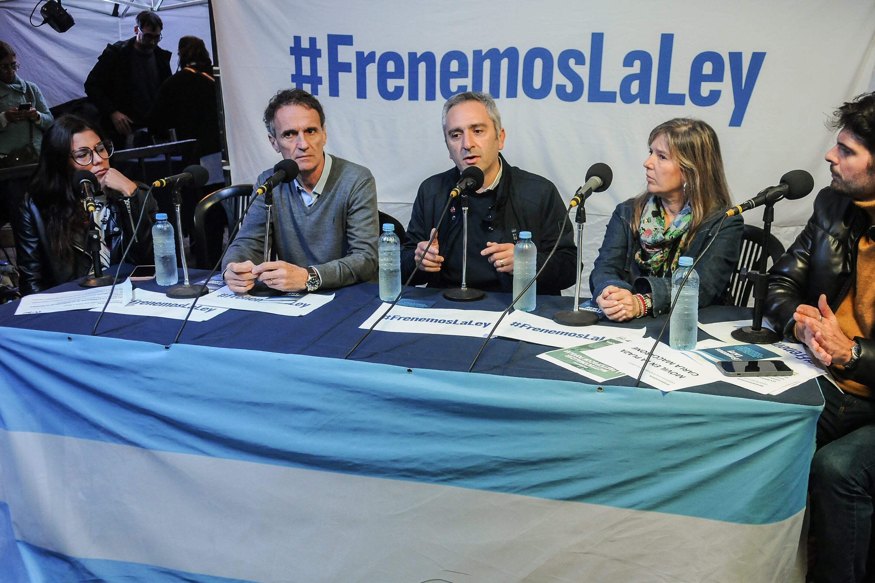 Protesta de la oposición en la previa de la sesión en el Senado
