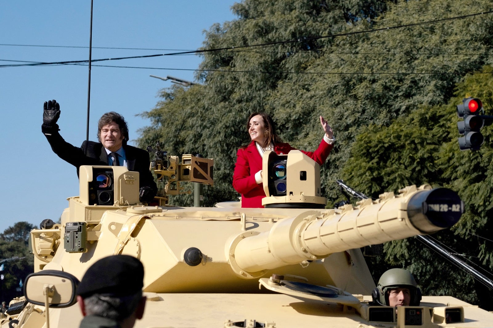 Alcanza con detenerse en una de las recientes fotos de Javier Milei para entender. Se lo veo con su habitual sonrisa de hombre averiado sobre un tanque de guerra argentino.