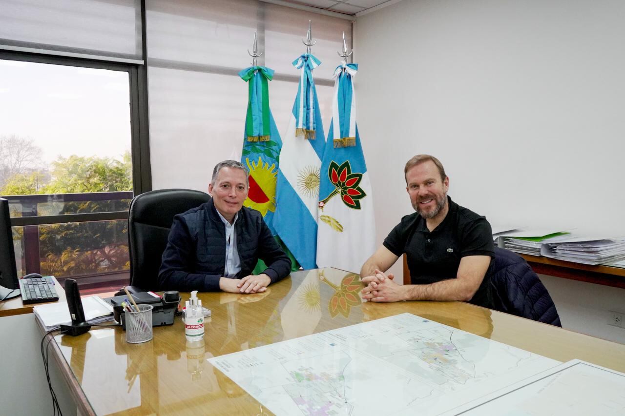 El intendente de Esteban Echeverría, Fernando Gray, recibió esta mañana en el edificio municipal al jefe comunal de Ezeiza, Gastón Granados.
