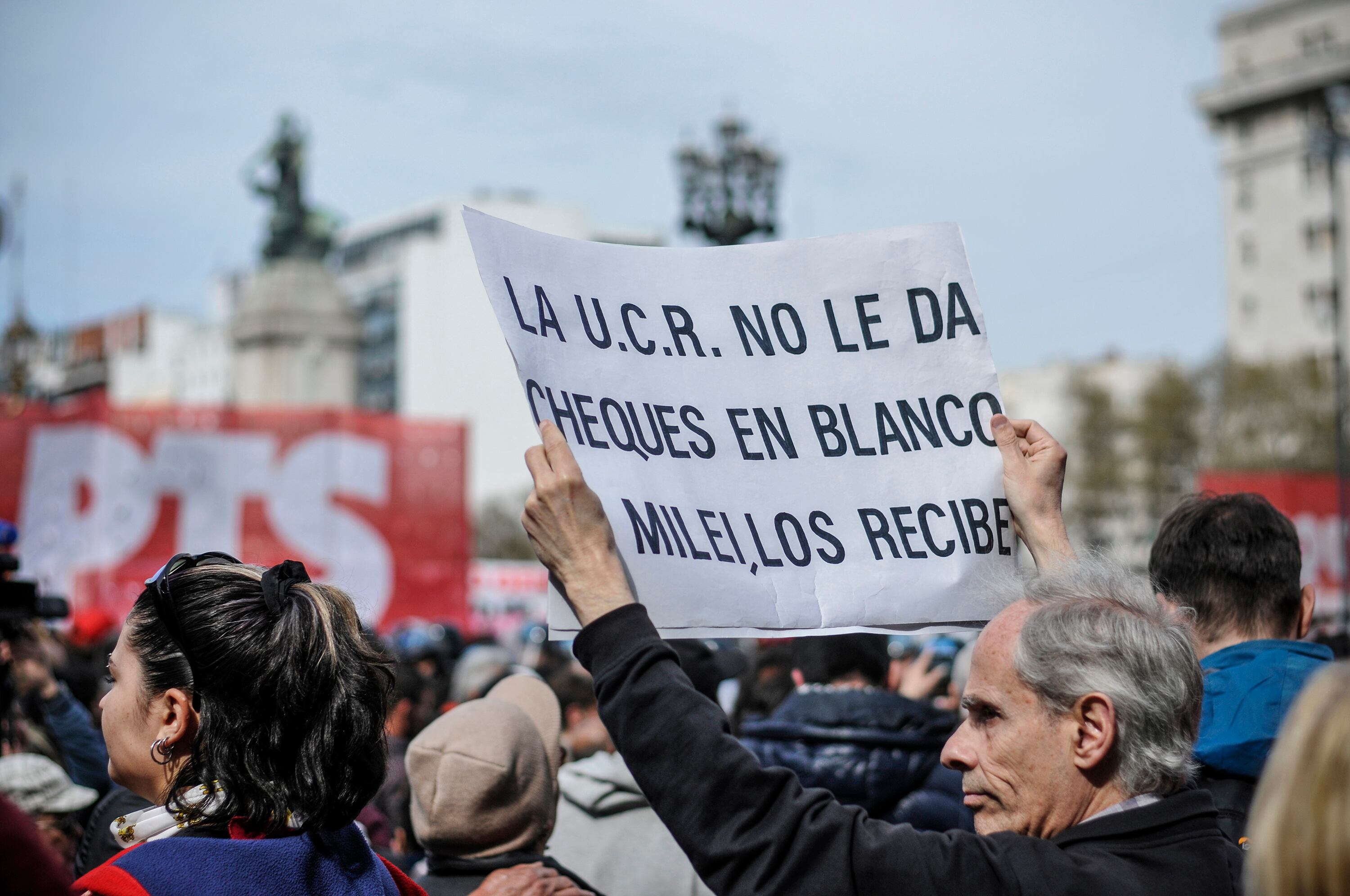 -¡Vendidos! ¡Panqueques..! ¡Traidores!-, grita Lili contra las rejas que protegen el ingreso al Congreso.