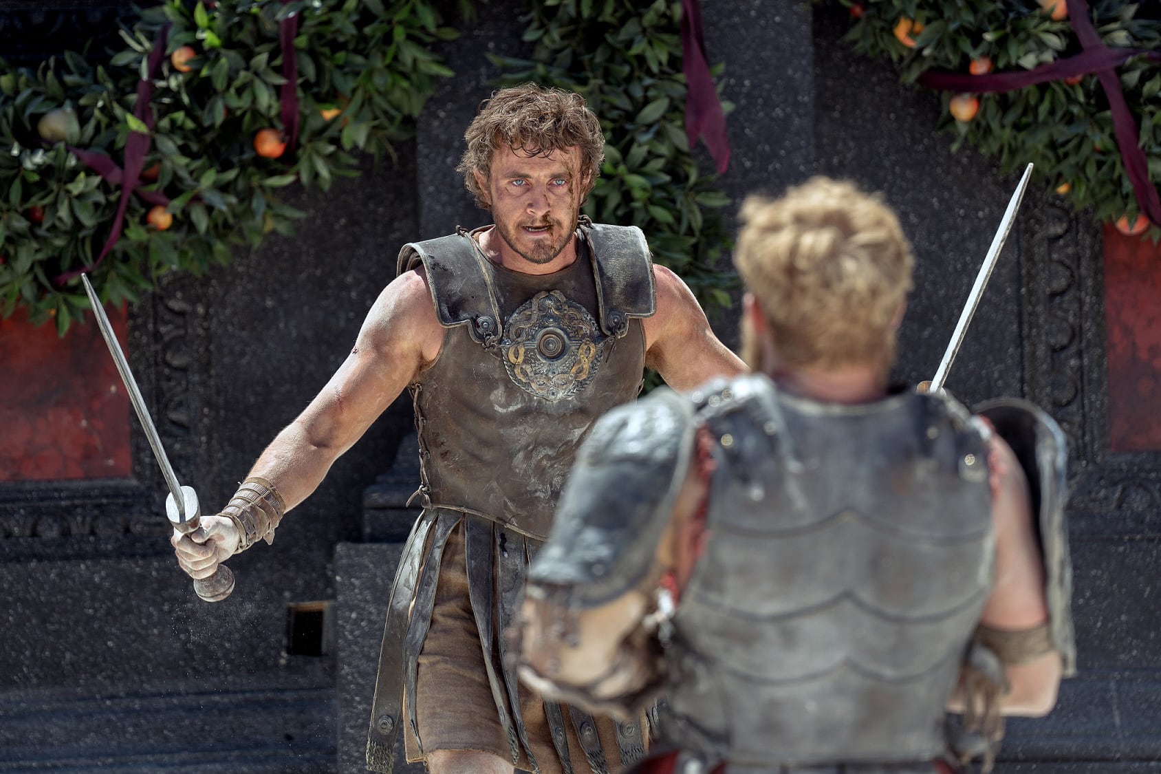 Ya sin Russell Crowe ni Joaquin Phoenix, la segunda parte retoma la historia varios años después con un joven soldado interpretado por Paul Mescal. El film mezcla el retrato histórico infiel a la Historia con el cuento de aventuras clásico y la historia de intrigas palaciegas.