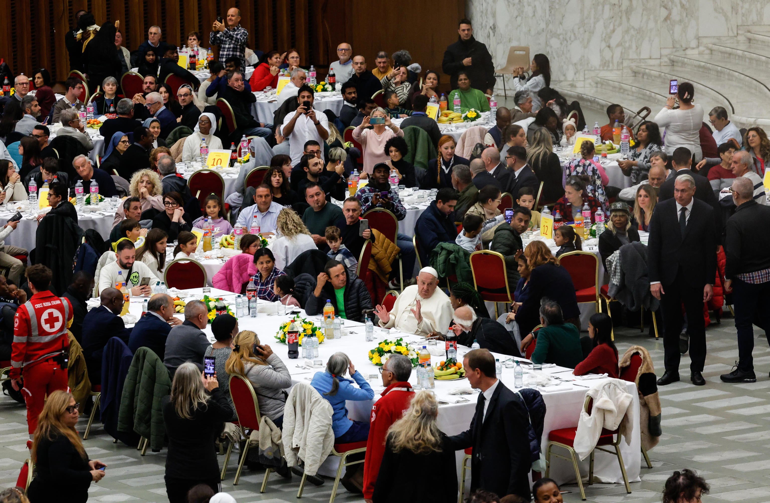 Entre los invitados al almuerzo hubo 1.300 refugiados y desplazados de distintos países que se alojan en el Centro Astalli.