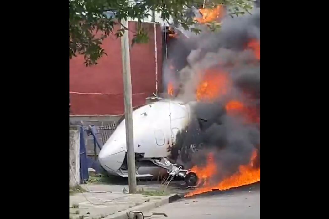 Se trata de un Bombardier Challenger 300 matrícula LV-GOK que pertenecía a la familia Brito y volvía de Punta del Este. Al no poder frenar, impactó contra viviendas de la zona y se incendió. Hay heridos.