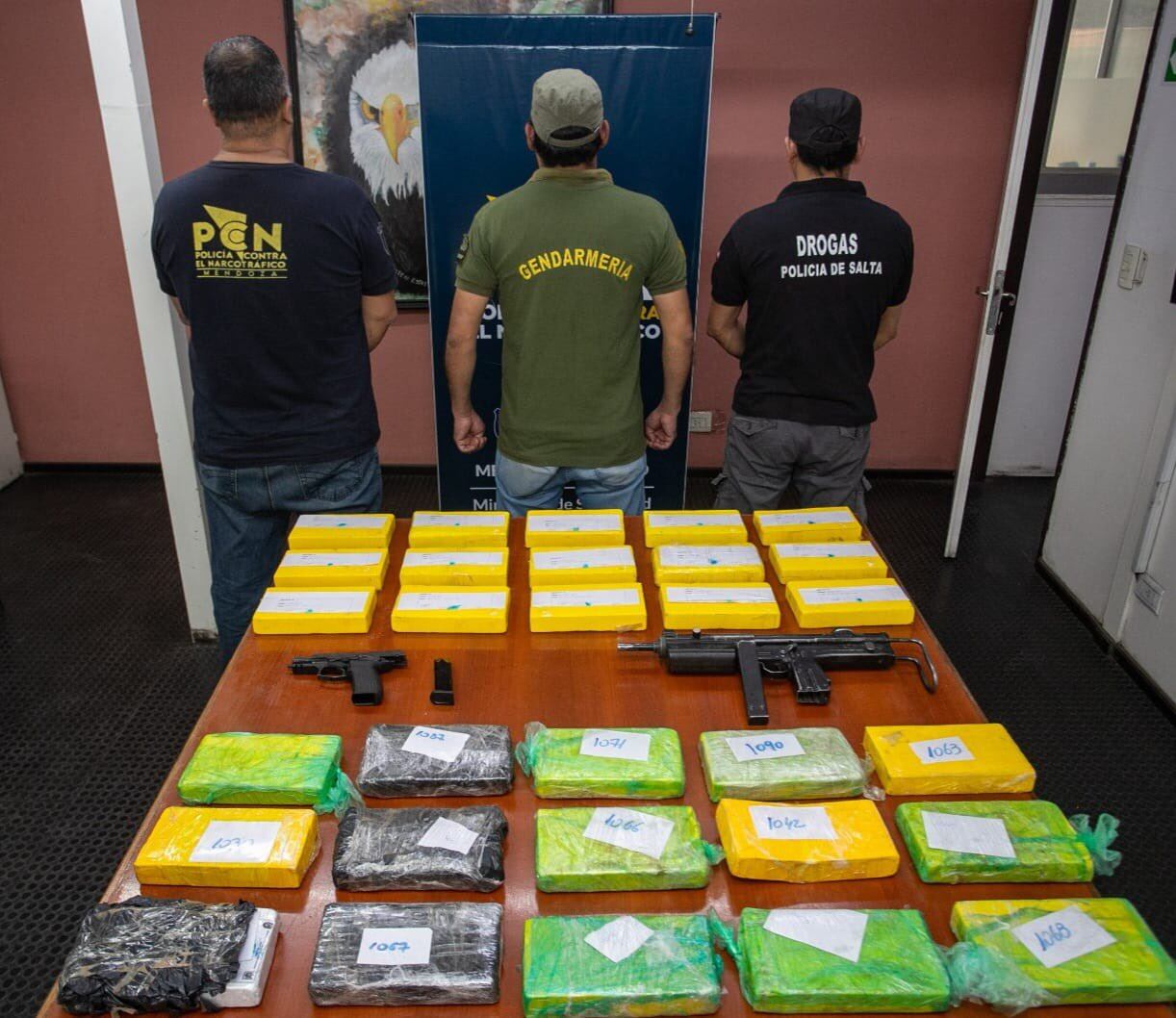La provincia de Salta destacó que las detenciones fueron resultado del trabajo conjunto de la Policía de Salta, la Gendarmería Nacional y la Policía de Mendozan. Se decomisaron 35 kilos de cocaína.