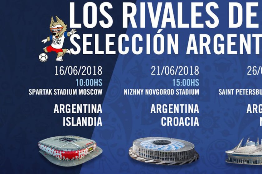 En el sorteo realizado hoy en Moscú la Selección quedó como cabeza de serie del Grupo D. Debutará el 16 de junio en la capital rusa ante Islanda, debutante en un Mundial. Cinco días más tarde enfrentará a Croacia y el 26 cerrará la fase de grupos contra Nigeria
