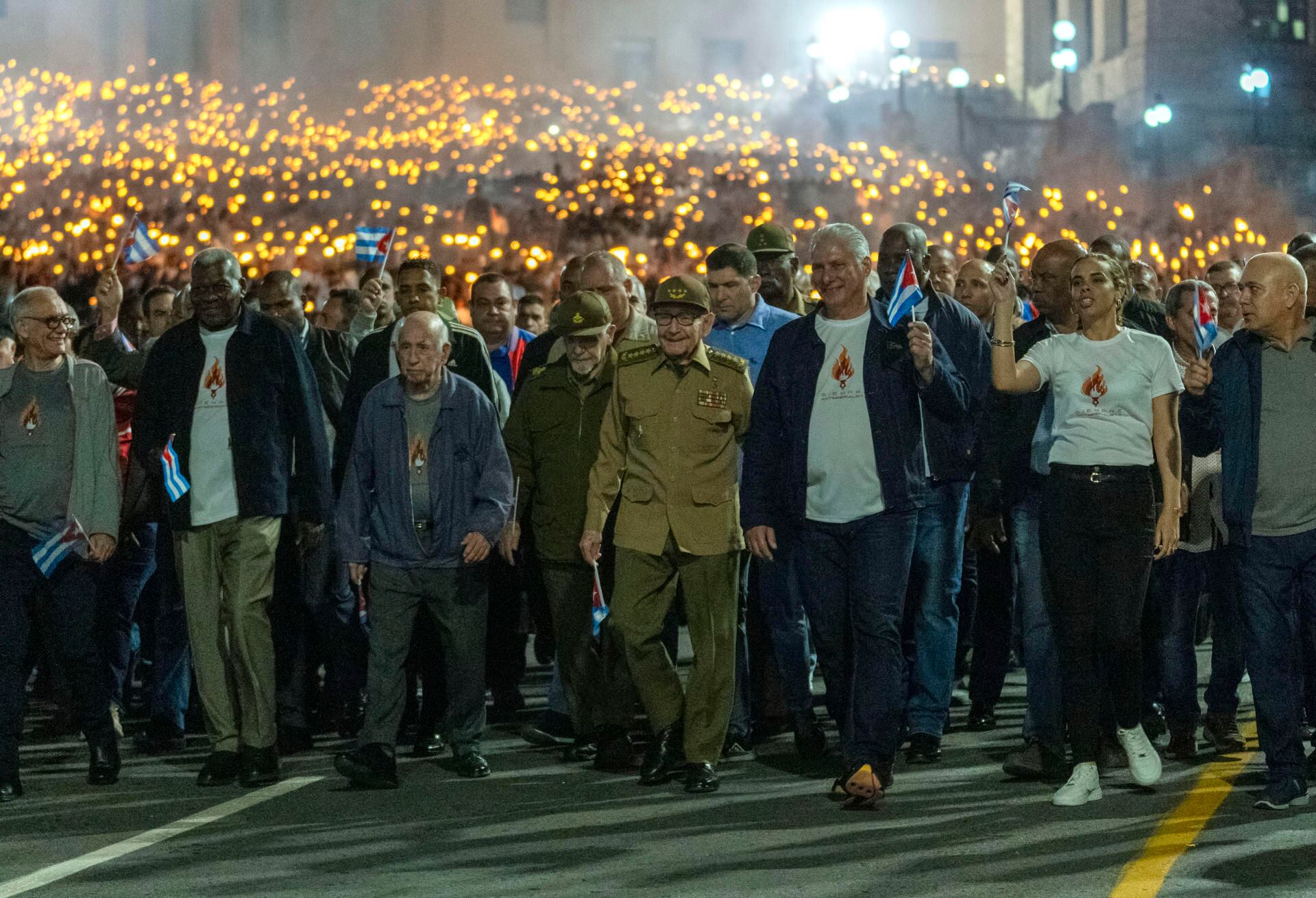 Miles de jóvenes participaron en La Habana en la tradicional Marcha de las Antorchas, en vísperas del 172 natalicio del prócer independentista José Martí, encabezados por el presidente Migue