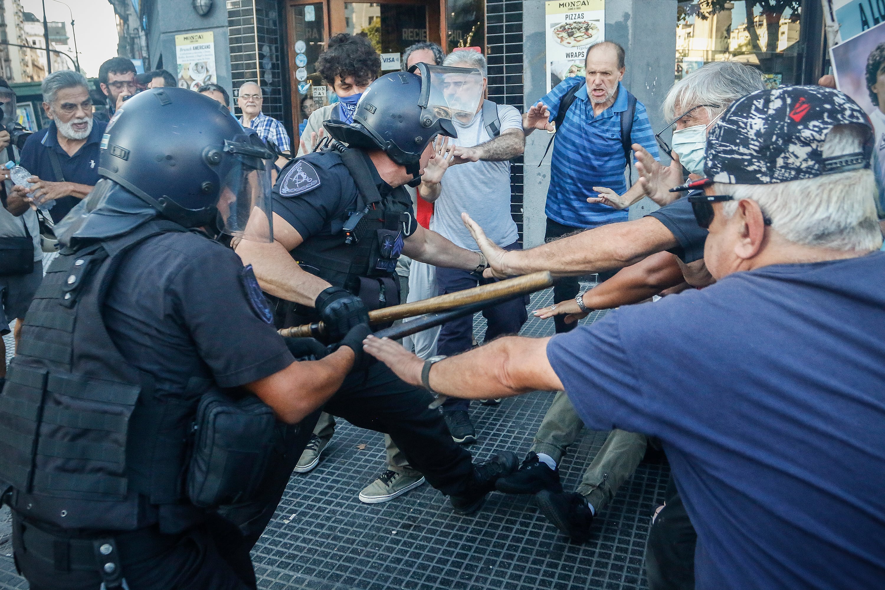Los palos y los gases de la federal se desataron pasadas las 17 horas, luego de que los manifestantes realizaran la tradicional ronda alrededor del Congreso. “Nos están haciendo mierda, hay que hacer algo”, denunciaron. A la protesta se sumaron "hinchas autovoncovados" de Chacarita Juniors
