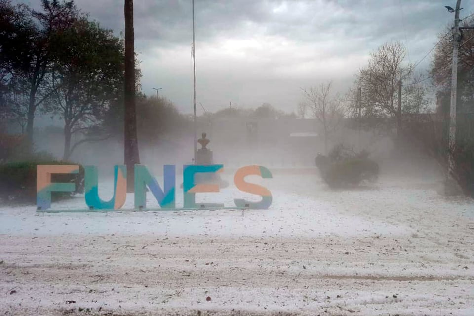 Una tormenta de granizo "nevó" a Funes y Roldán