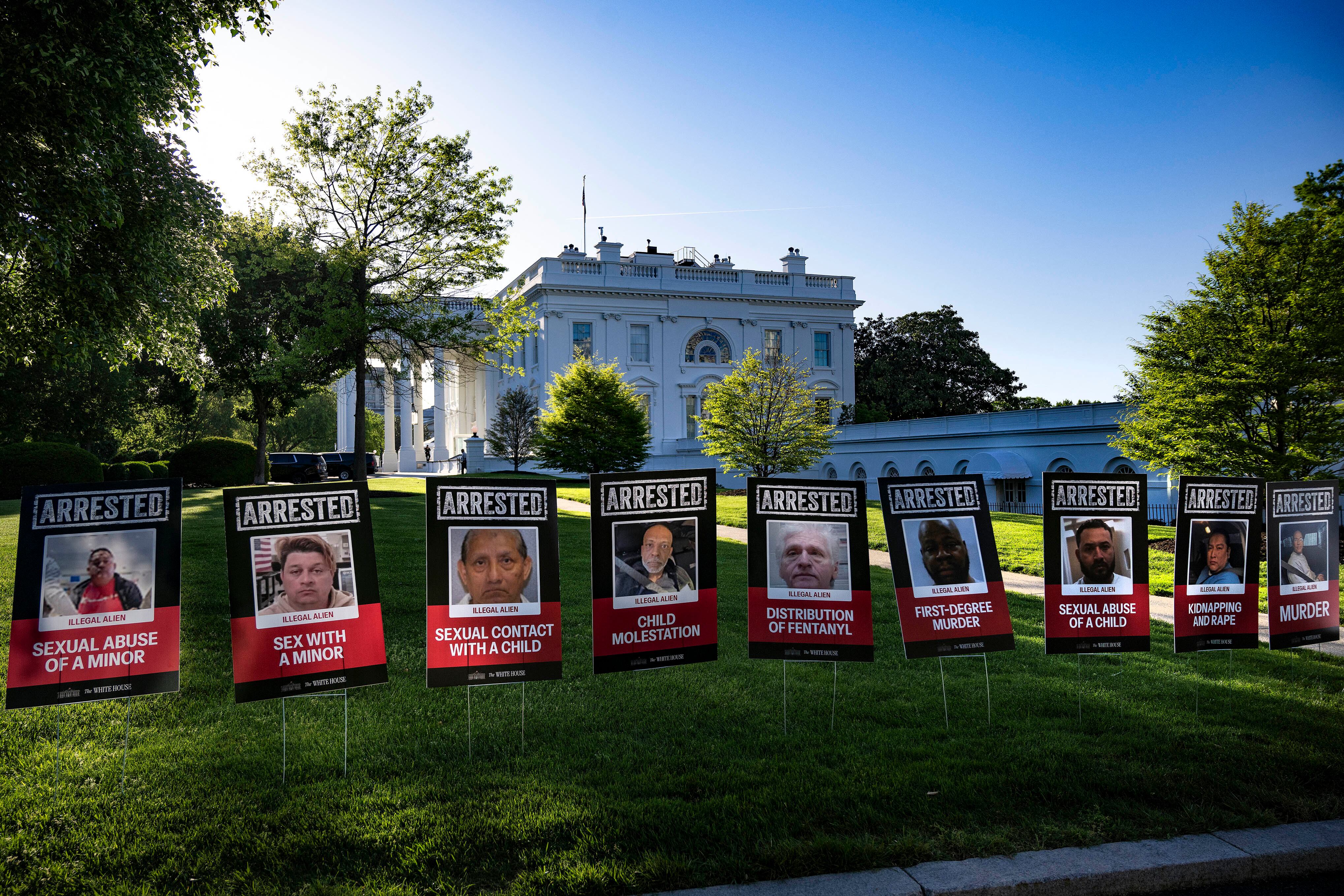 Colocan carteles de inmigrantes detenidos alrededor de la Casa Blanca