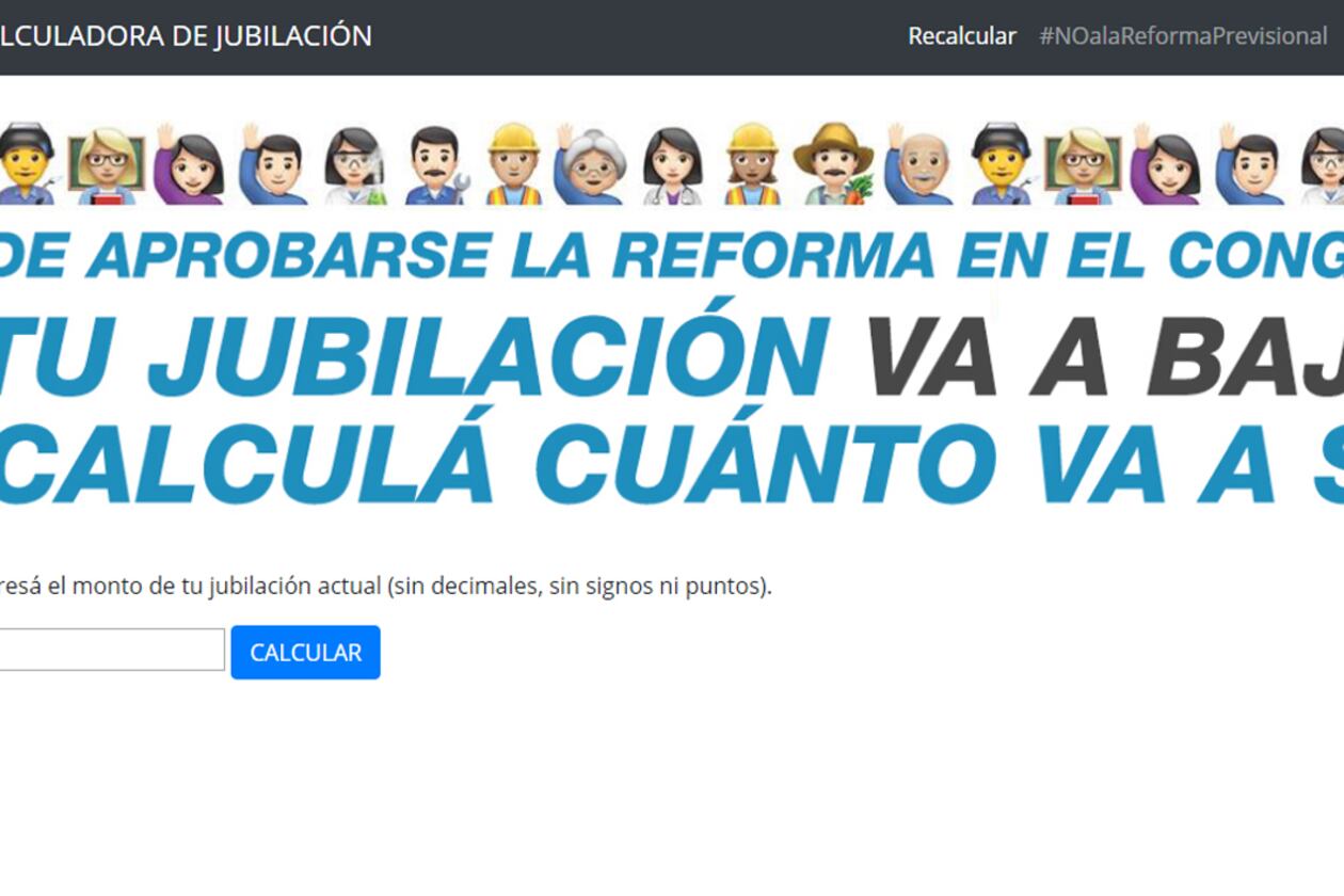 Si como prevé el oficialismo, mañana se aprobara en Diputados la reforma previsional acordada entre el Ejecutivo nacional y los gobernadores peronistas que, según los expertos, implicará un ahorro de entre 75 mil y 100 mil millones de pesos anuales, todos los jubilados, a partir de marzo, cobrarán menos de lo que cobrarían si se mantuviera la actual fórmula de indexación. Unidad Ciudadana puso a disposición de quien quisiera usarla una calculadora para chequear cuánto cobrará cada uno, de acuerdo con su último haber.