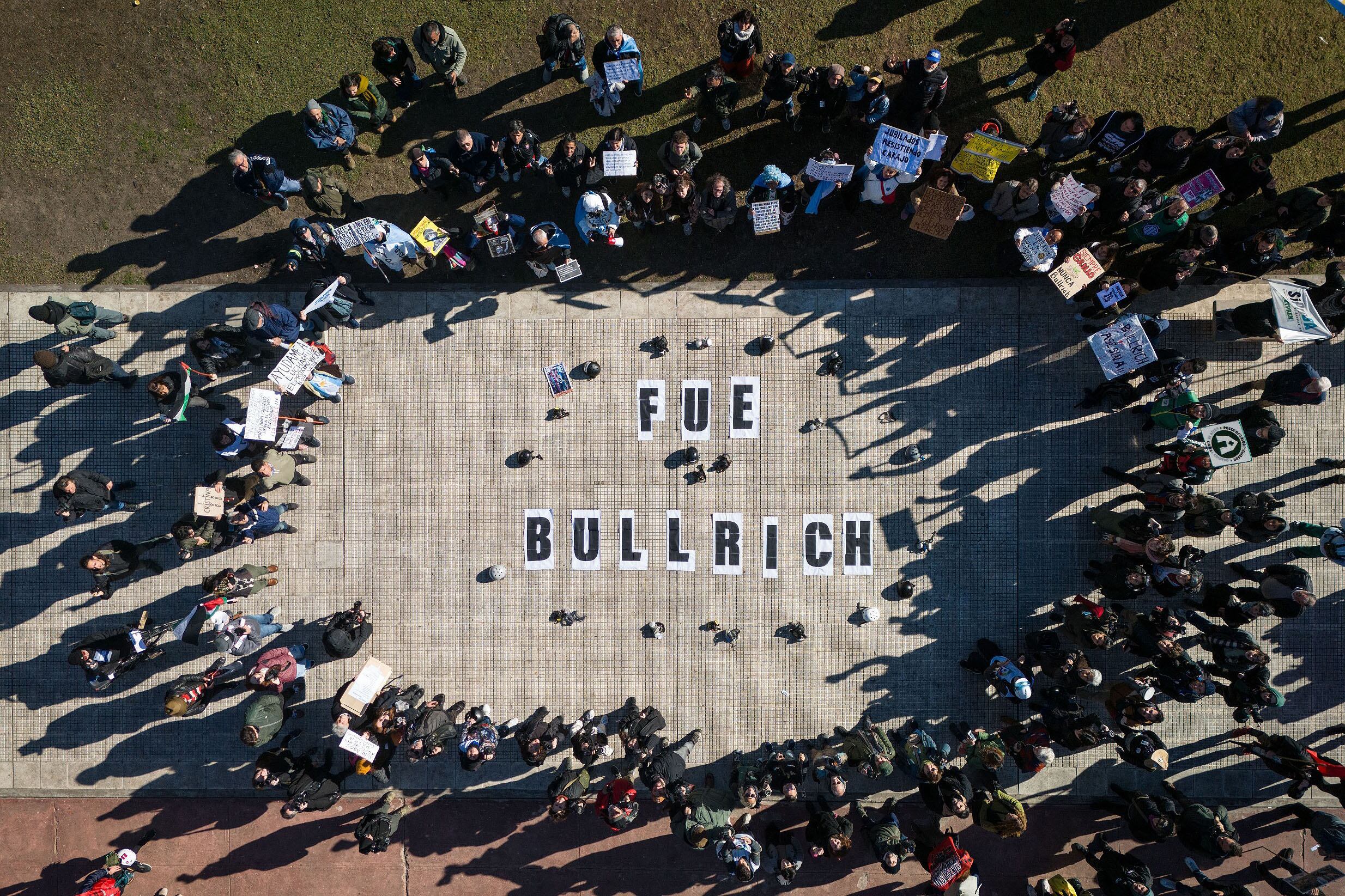 La intervención artística se realizó en la intersección de Hipólito Yrigoyen y Solís, donde el fotoperiodista fue herido por un proyectil de gas lacrimógeno que disparó Gendarmería. Repudio al cierre del sumario interno de la fuerza que calificó al hecho de fortuito y culpó a Grillo de estar parado en la línea de fuego.