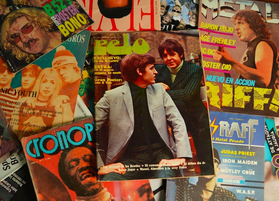“La fotocopia, el mimeógrafo, la hoja A4 doblada al medio”, dice Fernández. “Esas revistas son difíciles de conseguir. Aparecen de a puchos. Yo tengo un montón, pero se vuelve complicado completar el recorrido de cada una. Algunas de esas revistas, con una circulación muy pequeña, a lo mejor metían una entrevista de dieciocho páginas con Spinetta. Ahí ves que los tipos, en esa época, atendían a todos. La mayoría son muy personales. Funcionaban con muy pocos colaboradores o eran la idea de una sola persona, que escribía, dibujaba, editorializaba, copiaba y vendía”.