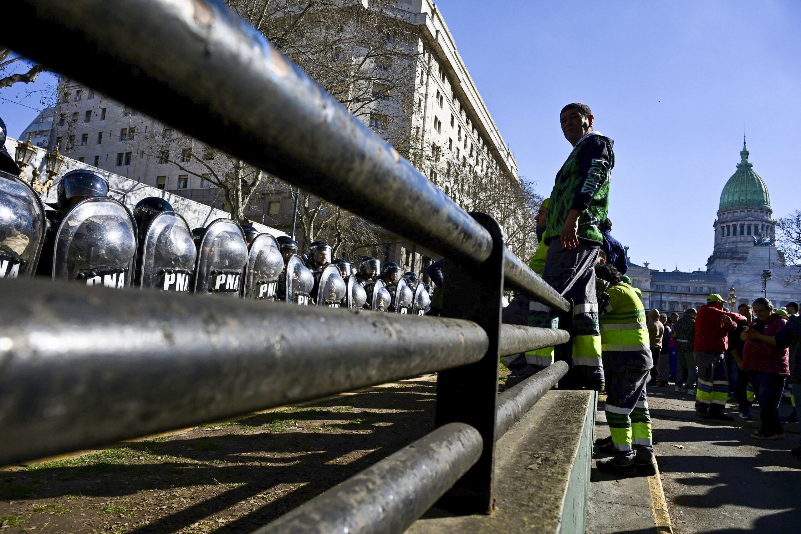 Los trabajadores se concentraron frente al Senado. Hubo un momento crítico cuando Gendarmería golpeó a gremialistas de la CATT.