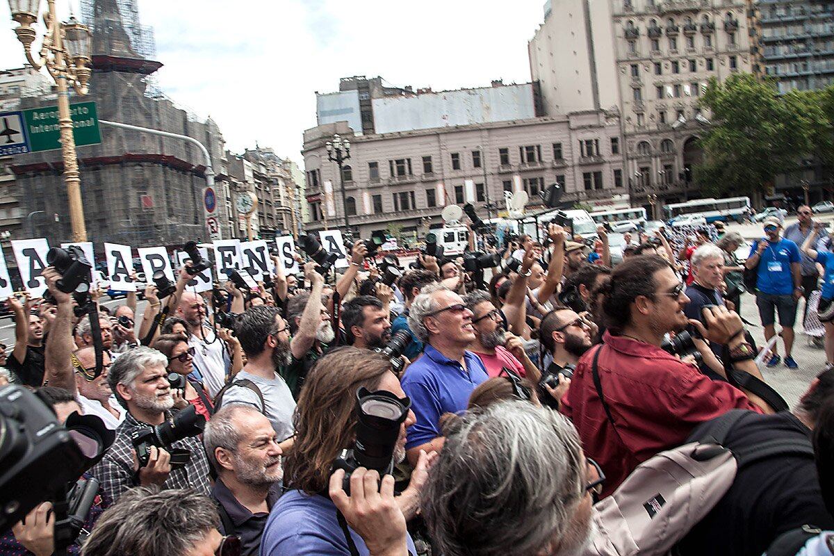 Los trabajadores de prensa estuvieron entre las principales víctimas de la represión a las manifestaciones contra la reforma previsional. En señal de protesta, los sindicatos realizaron un "camarazo" frente al Congreso.