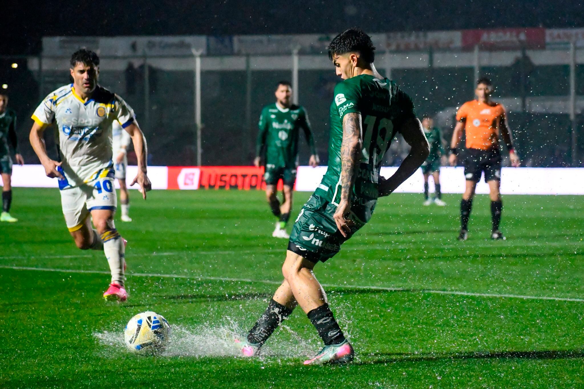 Los primeros 45 minutos se jugaron bajo la lluvia y con charcos en el campo.  En ese contexto, Central estuvo más cerca.