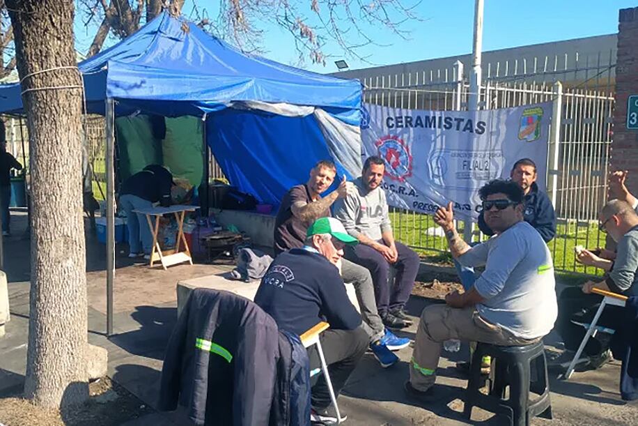 Acampe tras el cierre de la fábrica Ilva Porcellanato en Pilar