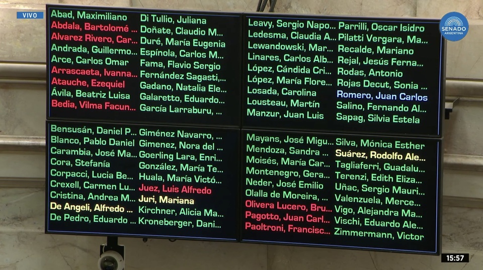 Así votó cada senador el veto de Javier Milei al reparto de los Aportes del Tesoro Nacional