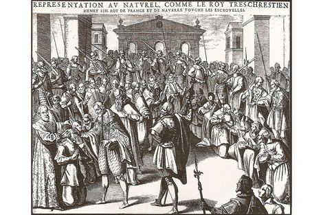 En Francia fue más que una tradición, era parte de la misma coronación. De la catedral de Reims, el nuevo rey era llevado a Corbeny, al templo de San Marcouf, patrono de los enfermos de escrófula. A partir de entonces, entre la unción de sus manos con aceite bendecida y el peregrinaje al santo, el rey era considerado curandero habilitado, dueño de un poder sobrenatural. Cuando había un cambio de dinastía, los nuevos reyes de apellido diferente se esmeraban en tocar súbditos, para mostrar que eran legítimos hasta en eso. Nadie, sin embargo, pudo ganarle la parada a San Luis, décimo de ese nombre, que sigue curando después de muerto. Un brazo suyo es la principal reliquia del monasterio de Poblet, en Cataluña, y hasta el siglo 17 era centro de vastas peregrinaciones de dolientes.