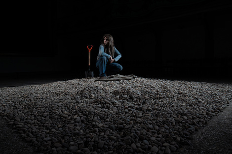 La protagonista escribe con la voz y describe imágenes desde su posición de fotógrafa. La escena está construida como una instalación (Antonio Villa es artista visual y el concepto del espacio sabe de la síntesis y de la potencia narrativa) el rectángulo de piedras que marca la dificultad, la hostilidad del lugar y cierta precariedad al momento de desplazarse, generan una suerte de trinchera. Los pocos objetos de los que se vale la actriz juegan con un contraste o tensión a nivel visual, la luz de la linterna demarca otro cuadro en relación con la propuesta de iluminación a cargo de Jésica Montes de Oca pero los objetos también se refieren a otros espacios. Cuando la protagonista regresa a su departamento después de un periplo que es narrado con precisión y justeza y que se desarrolla ante nuestros ojos como si realmente lo viéramos, el espacio sigue inconmovible porque el estado interno del personaje no ha cambiado tanto.