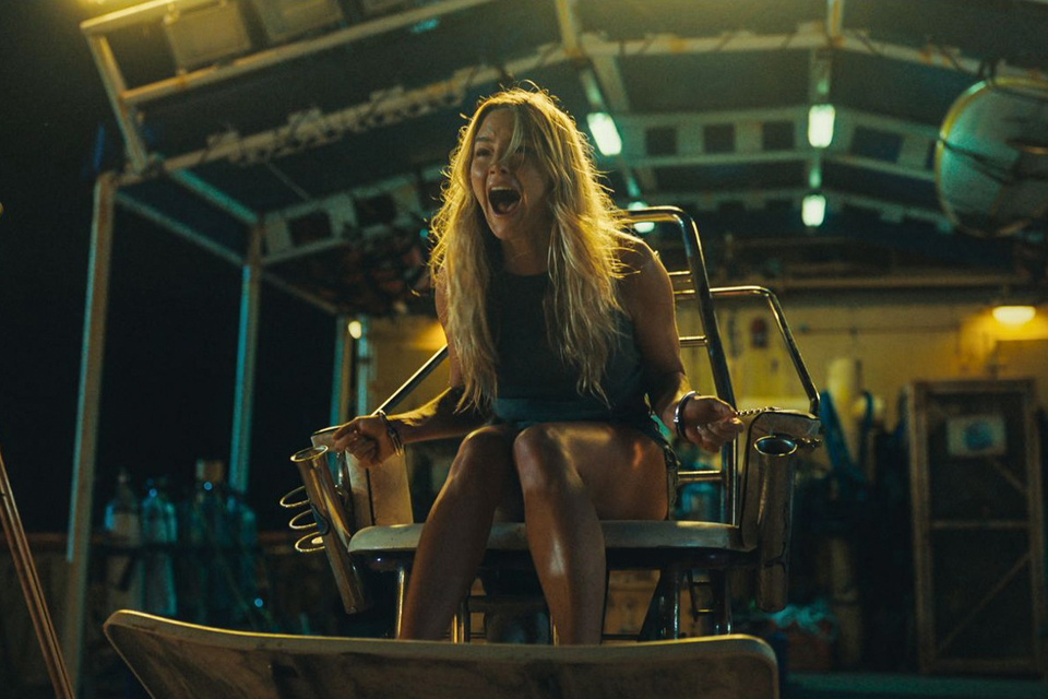 El prólogo lo deja bien en claro. Una pareja de turistas se sube a una embarcación cuyo dueño se especializa en ofrecer un tour extremo: descender en una jaula varios metros bajo el mar para observar de cerca a los tiburones de diversas especies que habitan el lugar. Todo sale bien en ese sentido, pero… el capitán del barco, interpretado con perturbador sadismo por Jai Courtney (el Capitán Bumerang de El escuadrón suicida) tiene otros planes para el dúo de apetitosos seres humanos. Corte a Zephyr (Hassie Harrison), una surfista estadounidense que anda en busca de las mejores olas, y su encuentro con Moses (Josh Heuston), un joven local con quien pasa una noche de pasión, escena de sexo arquetípica incluida. Que la rubia protagonista caiga en las garras de Tucker, el guía turístico obsesionado con los tiburones y con registrar sus costumbres alimenticias en VHS, es sólo cuestión de horas. También es evidente que Zephyr no encarnará en una nueva reversión de la típica “reina del grito” sino en digna oponente del inesperado captor.