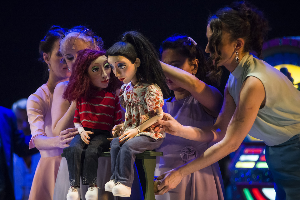 En esta puesta, los títeres, curiosamente, no asumen un rol protagónico sino más bien el de un recurso metafórico que acompaña y aporta contexto al relato. Magistralmente manipulados por el Grupo de Titiriteros del Teatro San Martín que dirige Adelaida Mangani, y con la cuidada dirección de una especialista en el género como Alvarado, los títeres y objetos se integran de manera orgánica para recrear situaciones del pasado que dan sentido al presente. En este punto, la obra confirma que el arte del títere puede desplegar una versatilidad que expande su campo de acción mucho más allá de las propuestas pensadas para infancias.