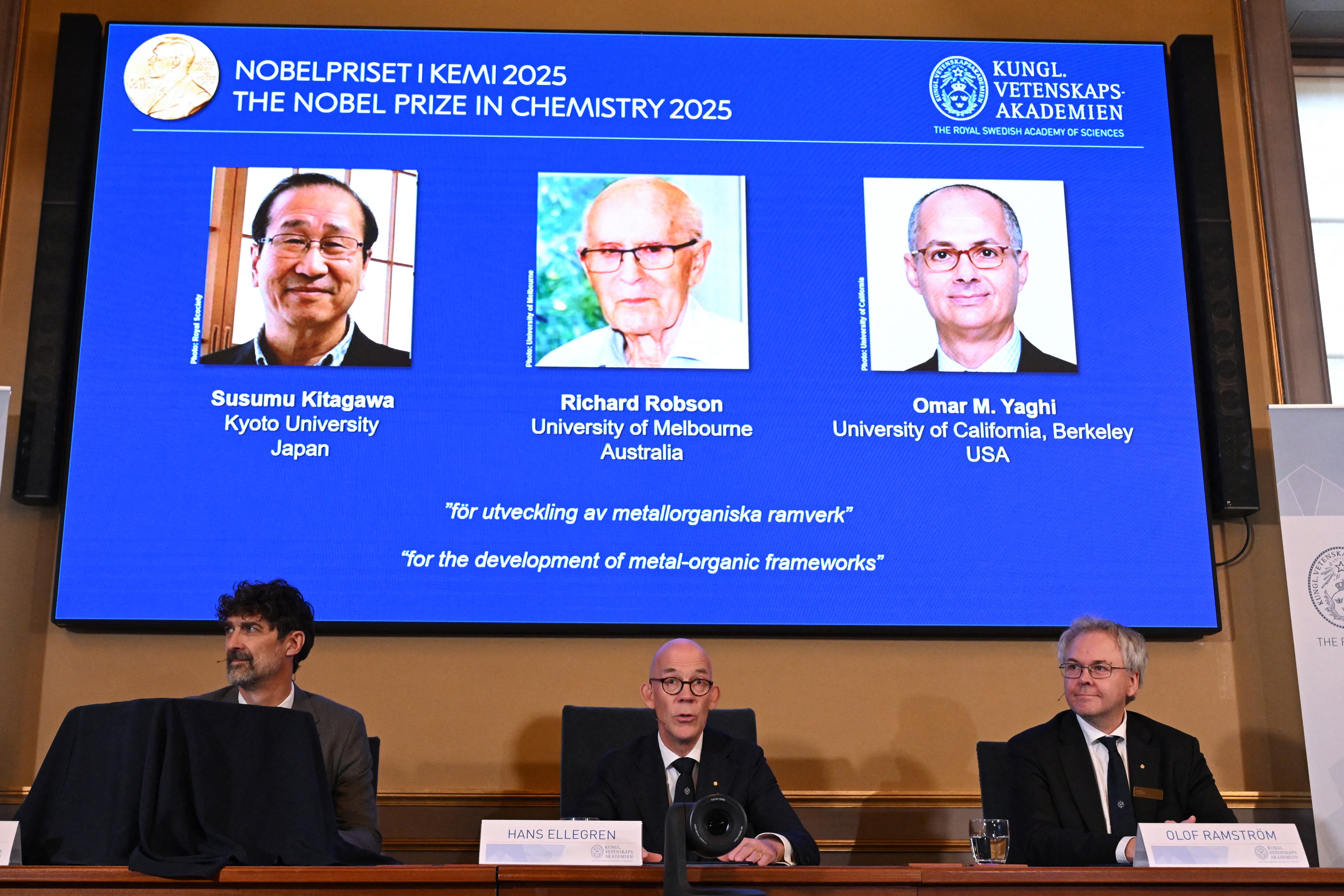 El Premio Nobel de Química fue para tres científicos por el desarrollo de estructuras metal-orgánicas