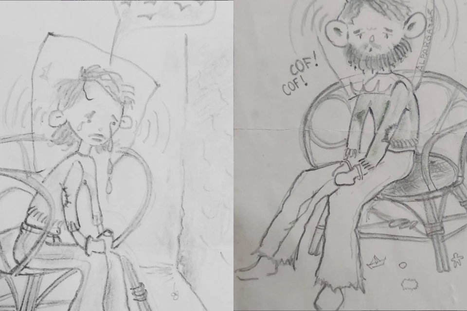 Los dibujos son cuatro y las escenas son diferentes entre sí, en particular, el autorretrato de Martinelli y su compañero, que fue el que Mariana decidió compartir durante la audiencia y sirvió como prueba de las condiciones de cautiverio. "Es muy representativo de las condiciones en las que estaban y de la experiencia por las que pasaron ellos y todos los que fueron detenidos", explicó la hija de desaparecidos.
