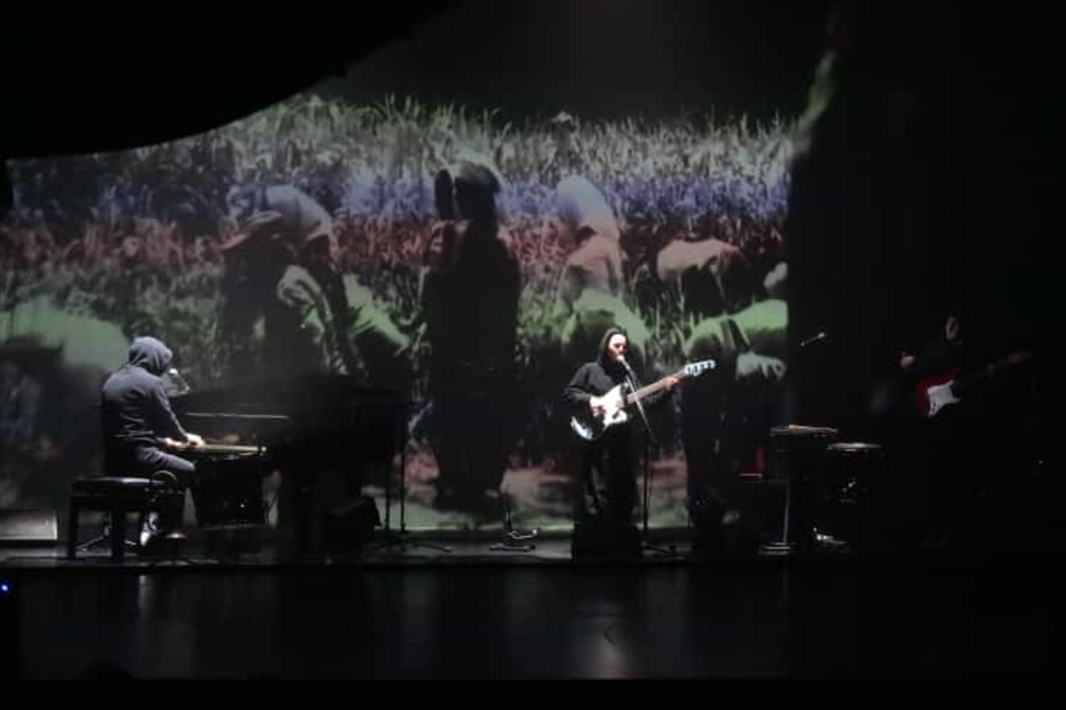 En la primera noche del Festival Internacional de Teatro Córdoba Mercosur el aplauso cerrado de la concurrencia fue para Muances, obra del artista performático francés Camille Rocailleux y su grupo E.V.E.R, una banda multiinstrumentista que compuso un friso sonoro que entró en relación con impactantes imágenes extraídas de la web. Con textos solamente cantados en diversos ritmos, el espectáculo sumó concepto y movimiento. “Caminar sobre semillas y no sobre escombros” fue la síntesis final de unas imágenes que, en principio mostraron un estado global de deshumanización para luego diluirse entre los testimonios de activistas ambientales, sociólogos y educadores de diversas partes del mundo referidos al compromiso de grupos e individuos que luchan a favor de la organización transversal en todos los campos del quehacer humano, contra la decepción y la desesperanza.