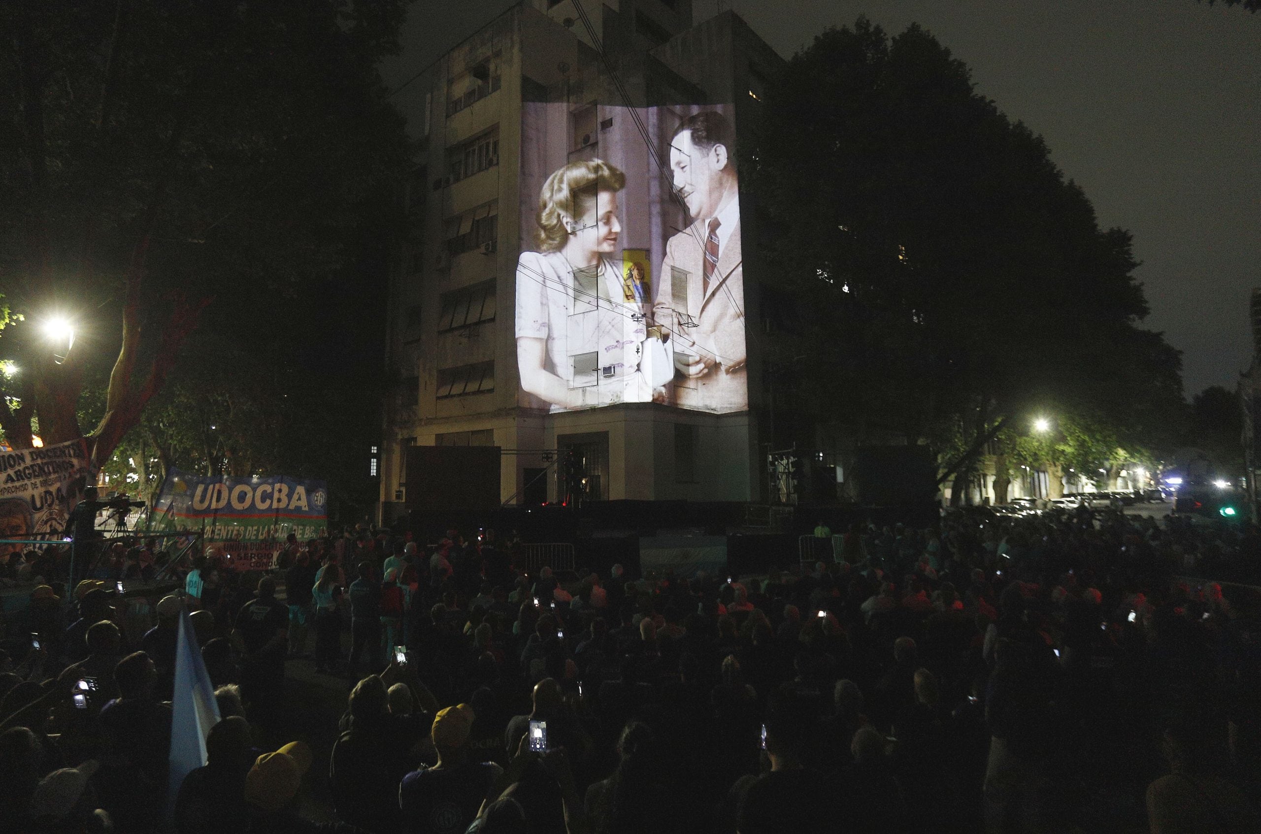 Fue un acto diferente con performances teatrales, un show de música trap y un mapping sobre la fachada de la central obrera.