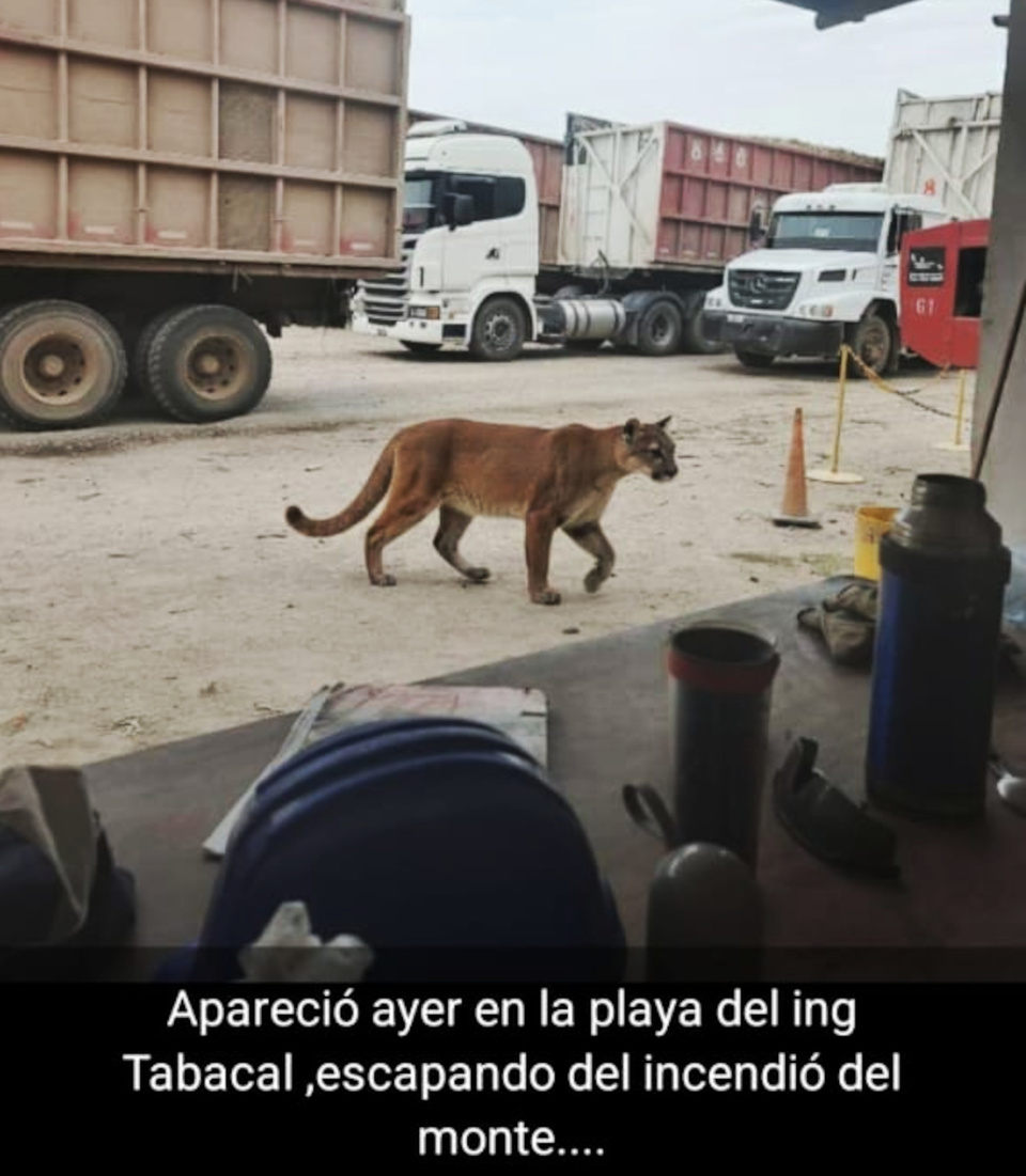 En las redes digitales se dio cuenta del desastre ambiental y el peligro para personas y usuarios de vehículos que -inclusive - corrieron riesgo de colisión debido al humo. Los animales salvajes también huyeron de las llamas, situación que registró un usuario que compartió la imagen de un puma deambulando en la playa de estacionamiento de El Tabacal.