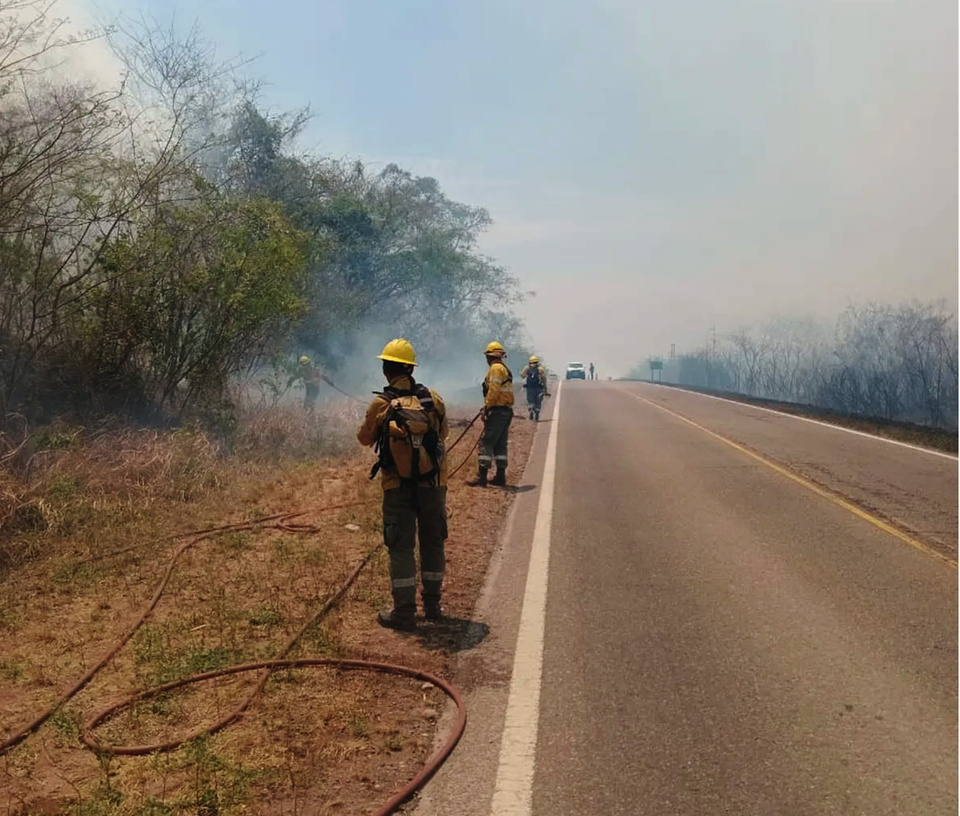 La gacetilla de prensa de la Administración de Parques Nacionales advertió ayer que debido al aumento de la temperatura y las condiciones del material vegetal, el fuego había cruzado la ruta nacional 34 y, en las primeras horas ya avanzaba en dirección al Parque Nacional por fuera de su jurisdicción. "La zona afectada presenta complejidades especiales para el combate del fuego, con alerta para el ingreso de personal en sectores con registro de depósitos de explosivos en desuso que fueran utilizados antiguamente para la explotación de hidrocarburos", detalló el reporte de APN. Se refería a los pozos petroleros que se encuentran dentro del Parque Nacional Calilegua y que son administrados por el Estado jujeño.