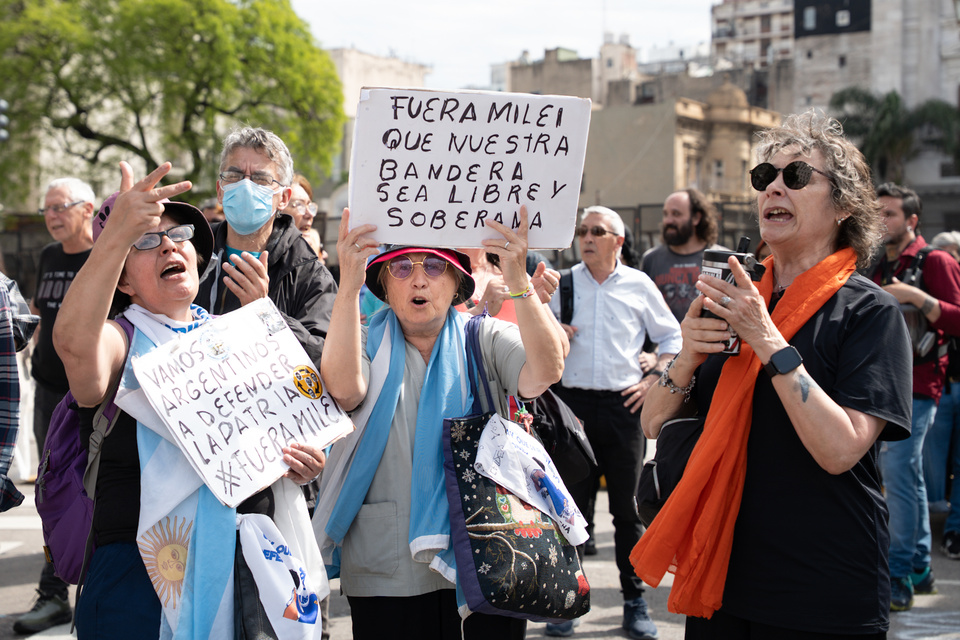Los jubilados se movilizan cada miércoles desde comienzos del año para exigir un aumento de haberes acorde a la inflación, además de repudiar los vetos presidenciales a las leyes de financiamiento universitario y de emergencia en pediatría.