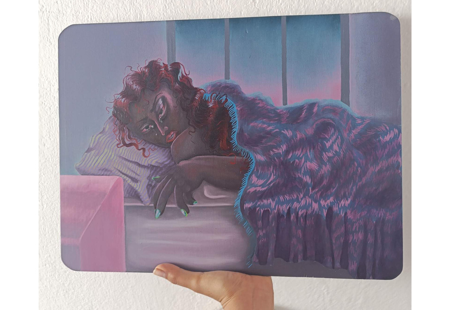 Todo comenzó con una fascinación por la danza. Al principio, dice, sacaba fotos porque le gustaba lo que veía, sin darse cuenta de que estaba construyendo un archivo visual. Coleccionaba imágenes de tacos que en ese momento no podía comprar, junto con telas para los vestuarios que poco a poco iba armando. “Empecé como fan visual de ese mundo, y después entendí que lo que sucede en mi obra es que retrato mi vida, pero llevada a una fantasía. Pinto a partir de lo que me pasa. Por eso siento que mi obra tiene algo de sinceridad y de autenticidad”, reflexiona, y señala: “no se trata de que antes no se hayan pintado mujeres en poses sugerentes, o a personas marronas o indígenas, sino de que ahora hay una generación que puede autorrepresentarse. Más que en la temática, el cambio está en quién mira”, afirma.