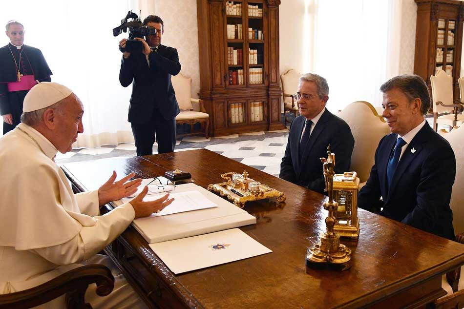 El papa Francisco recibió juntos y por separado al presidente colombiano, Juan Manuel Santos, y a su predecesor y jefe de la oposición Álvaro Uribe, pero su mediación no logró que ambos superaran las diferencias en torno del proceso de paz con las FARC.