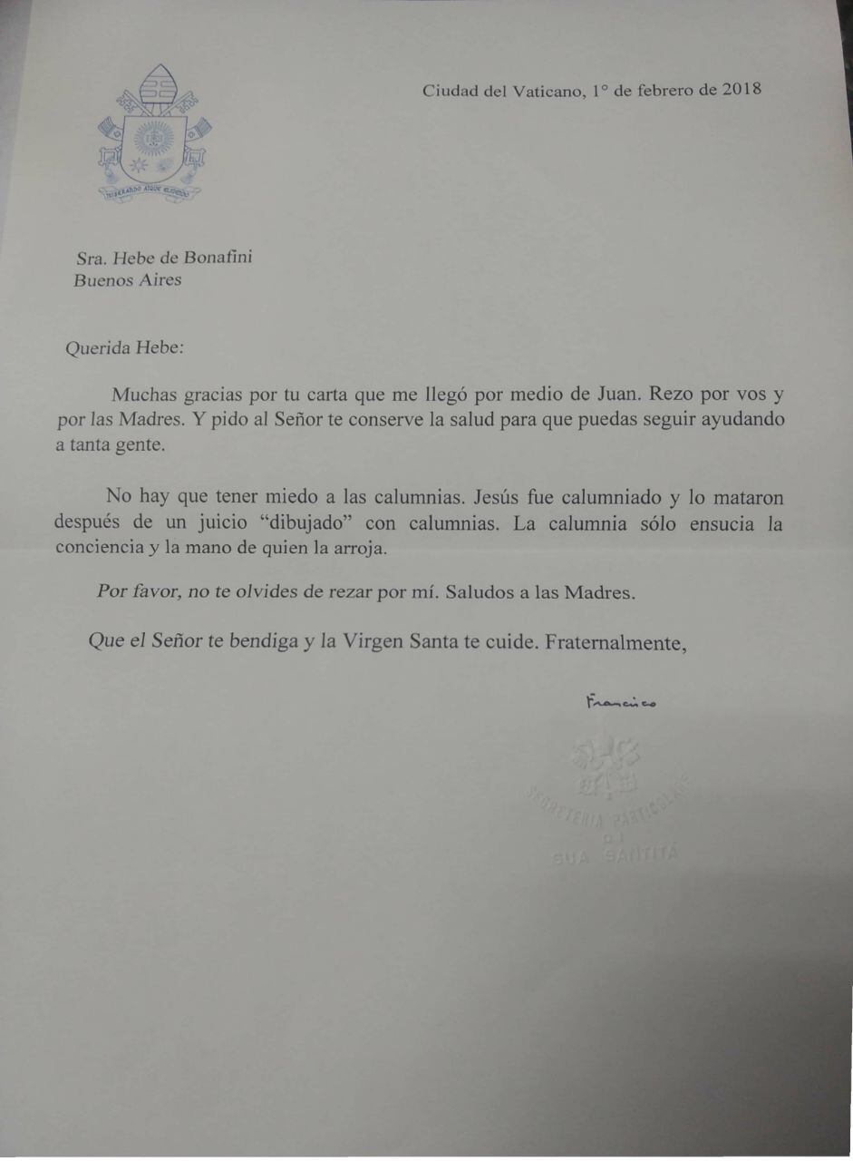 La carta de Francisco a Hebe
