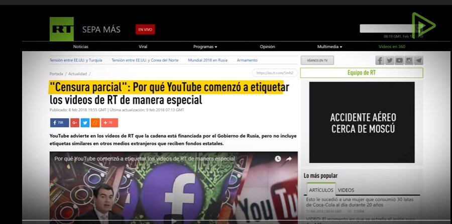 La respuesta de RT a las "advertencias" en Youtube