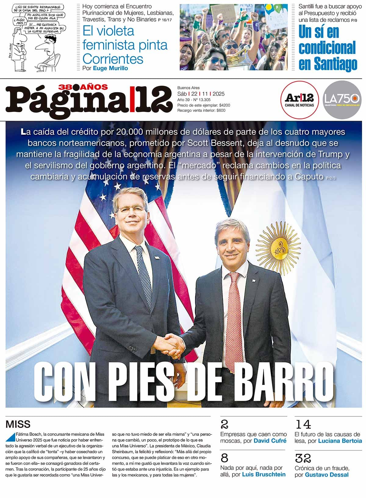 Fátima Bosch, la concursante mexicana de Miss Universo 2025 que fue noticia por haber enfrentado la agresión verbal de un ejecutivo de la organización que la calificó de “tonta” -y haber cosechado un amplio apoyo de sus compañeras, que se levantaron y se fueron con ella- se consagró ganadora del certamen. Tras la coronación, la participante de 25 años dijo que le gustaría ser recordada como “una Miss Universo que no tuvo miedo de ser ella misma” y “una persona que cambió, un poco, el prototipo de lo que es una Miss Universo”. La presidenta de México, Claudia Sheinbaum, la felicitó y reflexionó: “Más allá del propio concurso, que se puede platicar de eso en otro momento, a mí me gustó que levantara la voz cuando sintió que estaba ante una injusticia. Es un ejemplo para las y los mexicanos, y para todas las mujeres”.