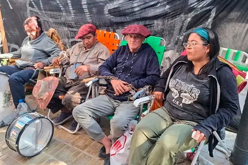 Mapuches desplazados se encadenan en la municipalidad de Cipolletti