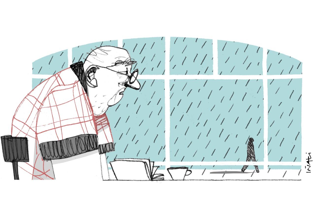 A pesar de ser verano, al tiempo se le ha ocurrido otra cosa: llueve y el viento se extiende desprolijo. El Tipo cruza la avenida y entra a la hamburguesería.