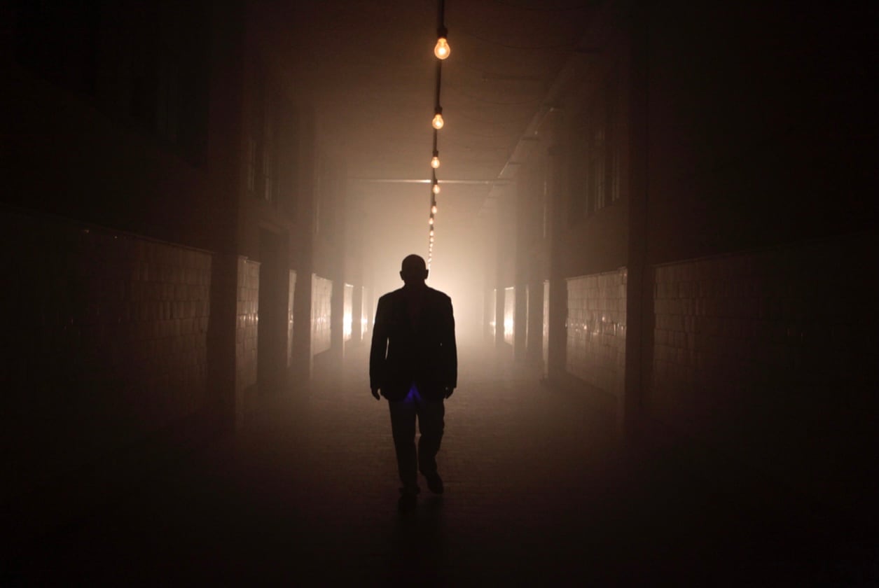 Una instalación fotográfica se presenta como franjas de luz que condensan paisajes panorámicos tomados desde un dron.