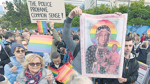 A comienzos de mes, la activista Elżbieta Podleśna fue arrestada por la policía polaca por distribuir posters donde la Virgen María y el niño Jesús lucen un bonitillo halo con los colores del arcoiris, símbolo de orgullo LGBTQ+. Acusada de “profanar las creencias religiosas”, ahora enfrenta una absurda pena de hasta dos años de cárcel.