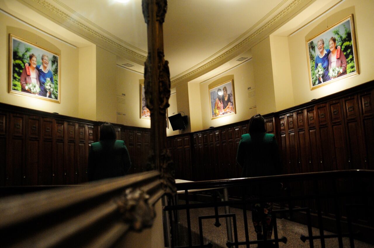 Trece gigantografías ilustran en el hemiciclo las principales leyes que ampliaron los derechos de mujeres y disidencias a lo largo del siglo XX y XXI.
