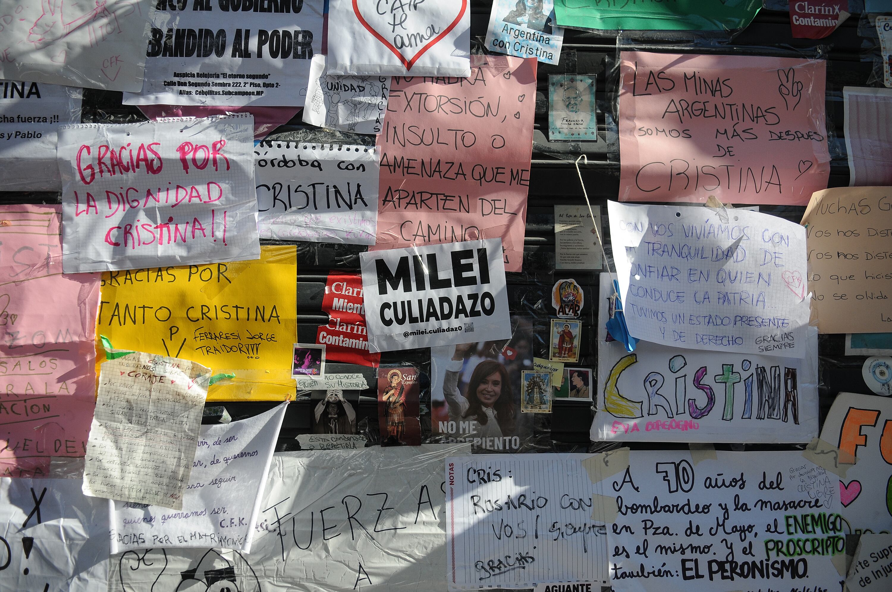 Me pasan cosas con los carteles de agradecimiento que le dejan a Cristina en las paredes de su casa. Esos carteles cobijan la memoria de un país.