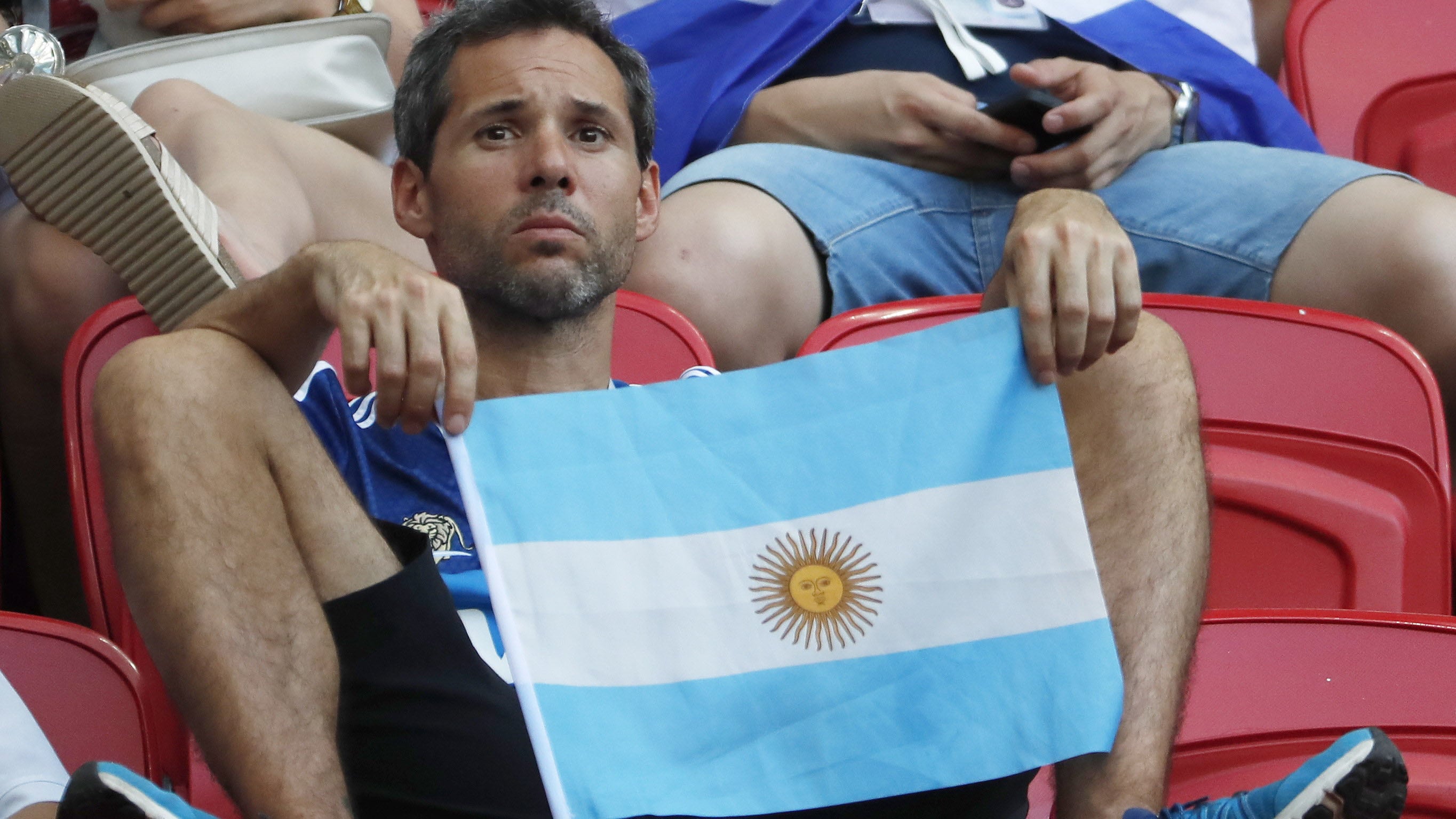 En todos esos ojos que miran a cualquier parte afuera y adentro de este estadio lejano y terrible de la ciudad de Kazán, hay algunos que simplemente están más húmedos, más apesadumbrados y más frág
