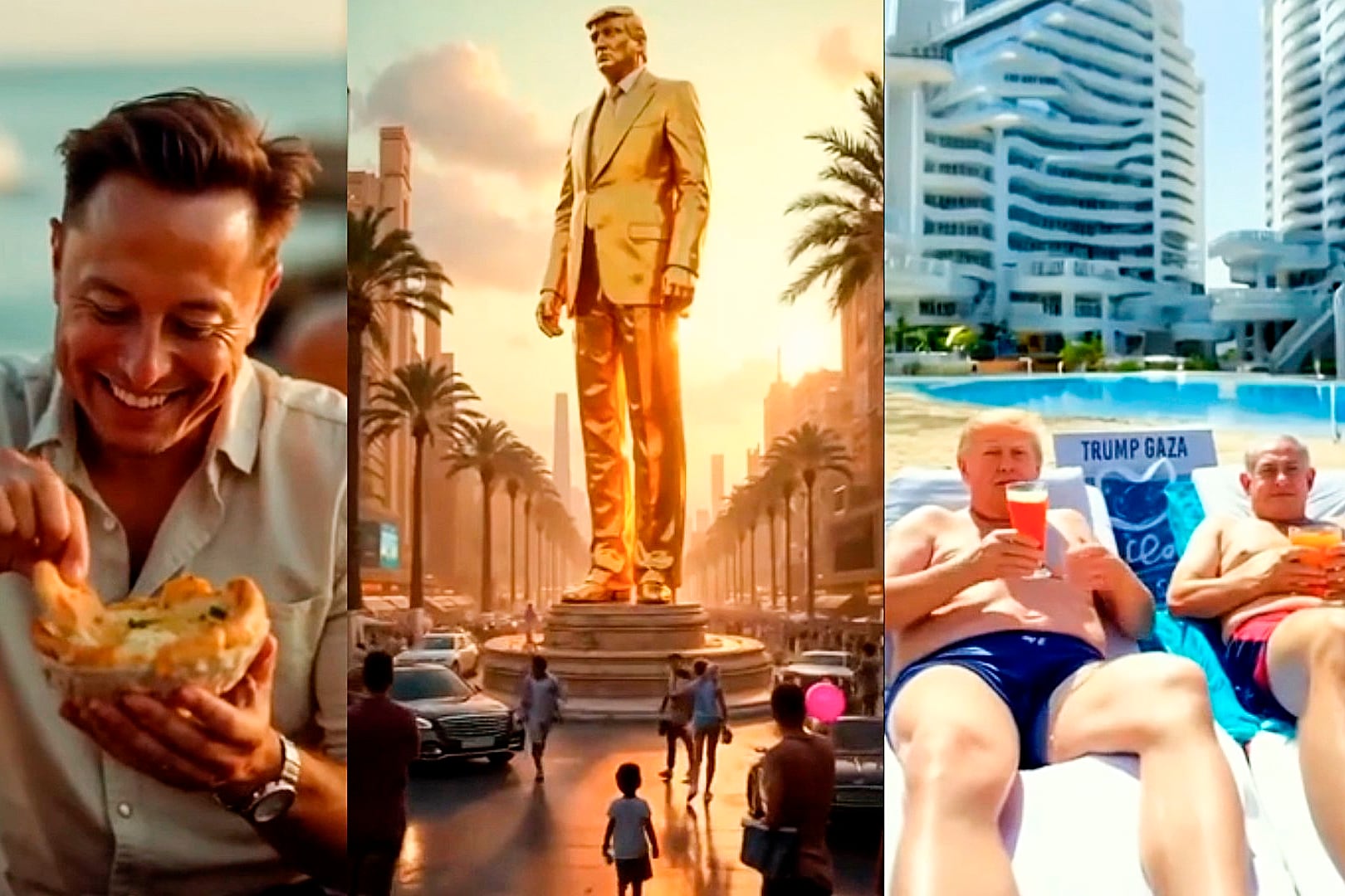 Donald Trump compartió un video hecho con inteligencia artificial donde se lo ve disfrutando unas vacaciones en un resort al estilo Dubái con Benjamin Netanyahu, mientras Elon Musk arroja dólares p