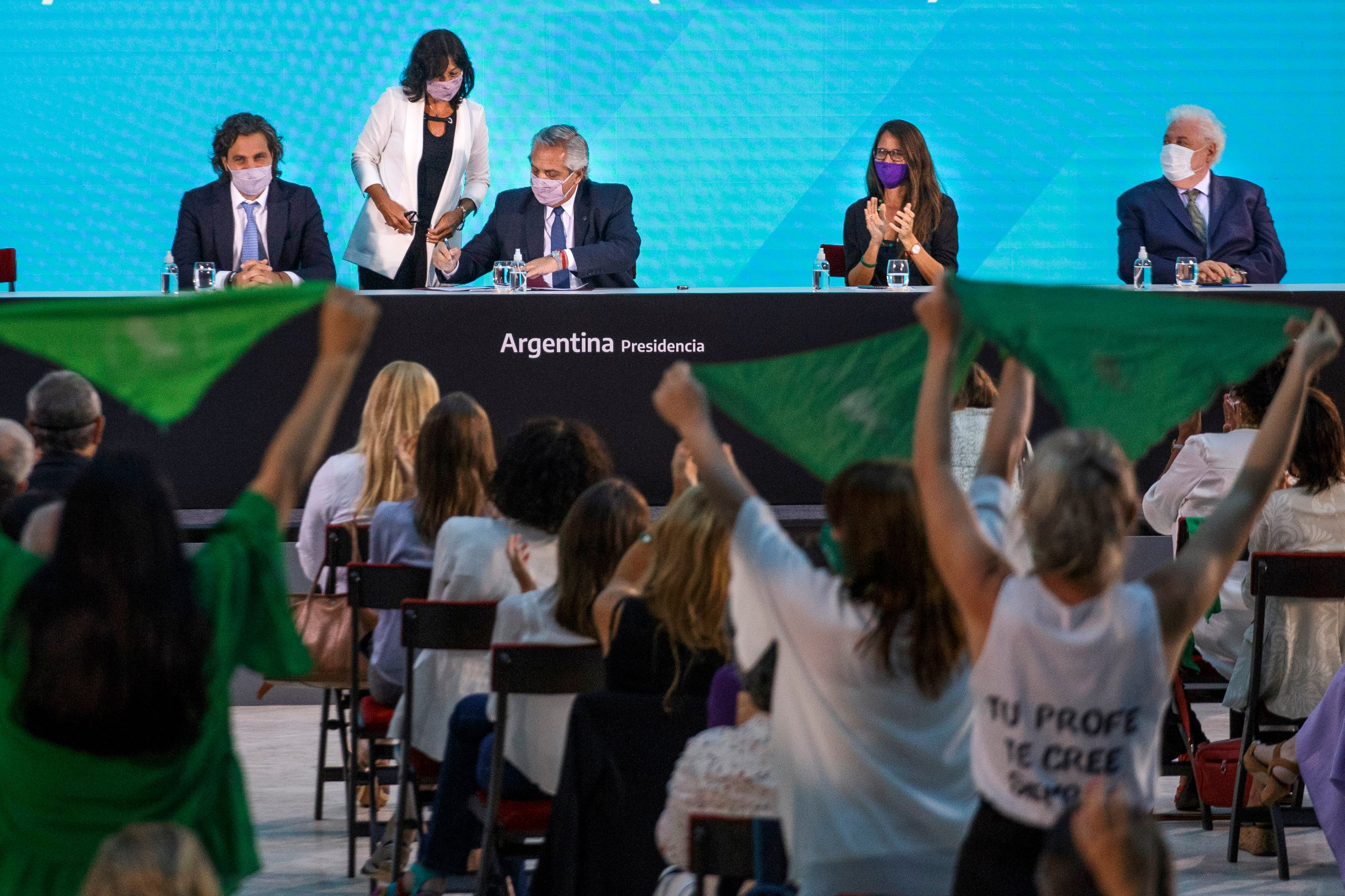 La firma fue en un acto al que asistieron activistas de la Campaña por el derecho al aborto, legisladoras, legisladores, funcionarios nacionales y referentes de la sociedad civil. "Es un día de felicidad para todos y todas porque estamos haciendo una sociedad un poco más justa", dijo el presidente.